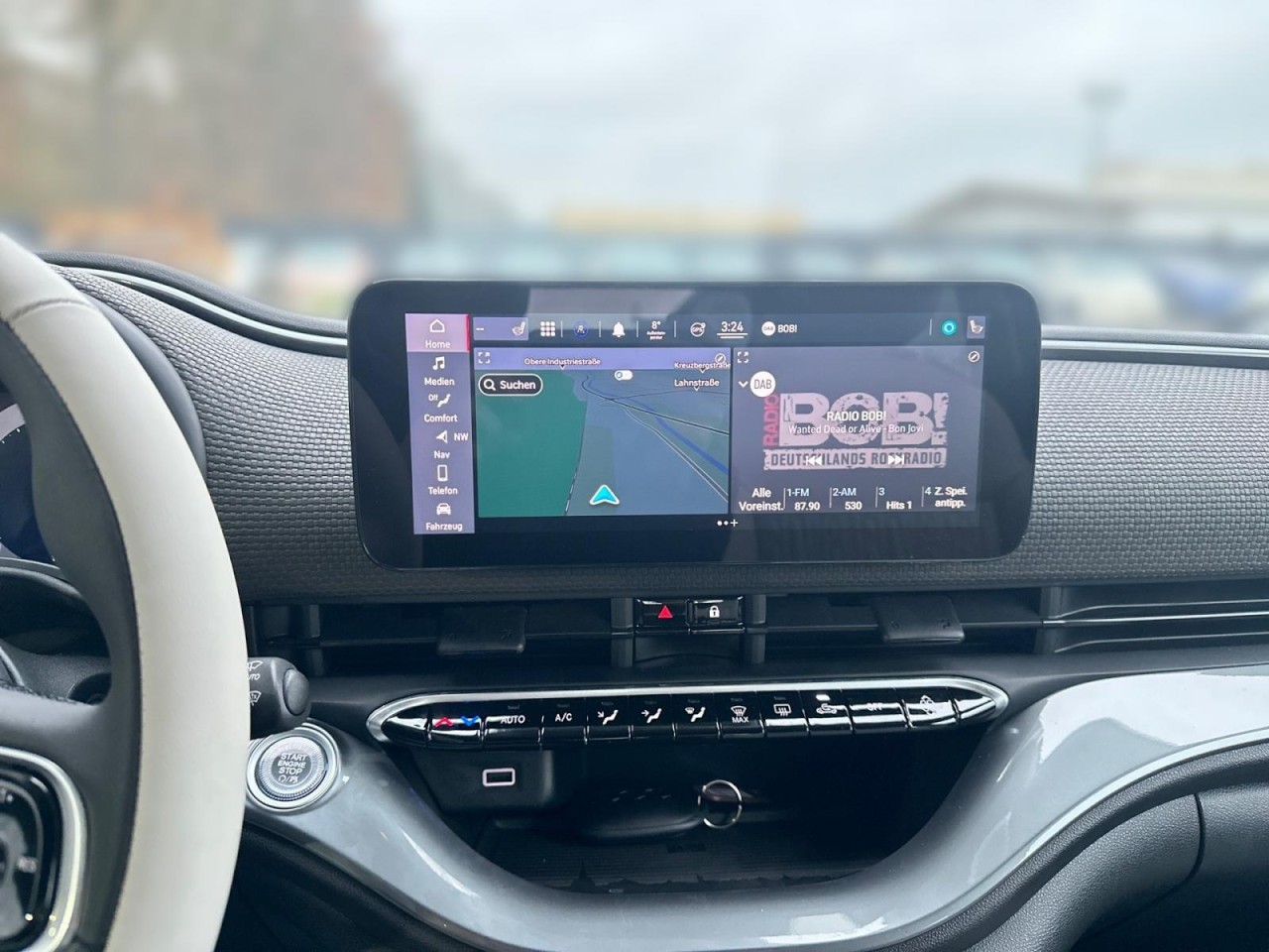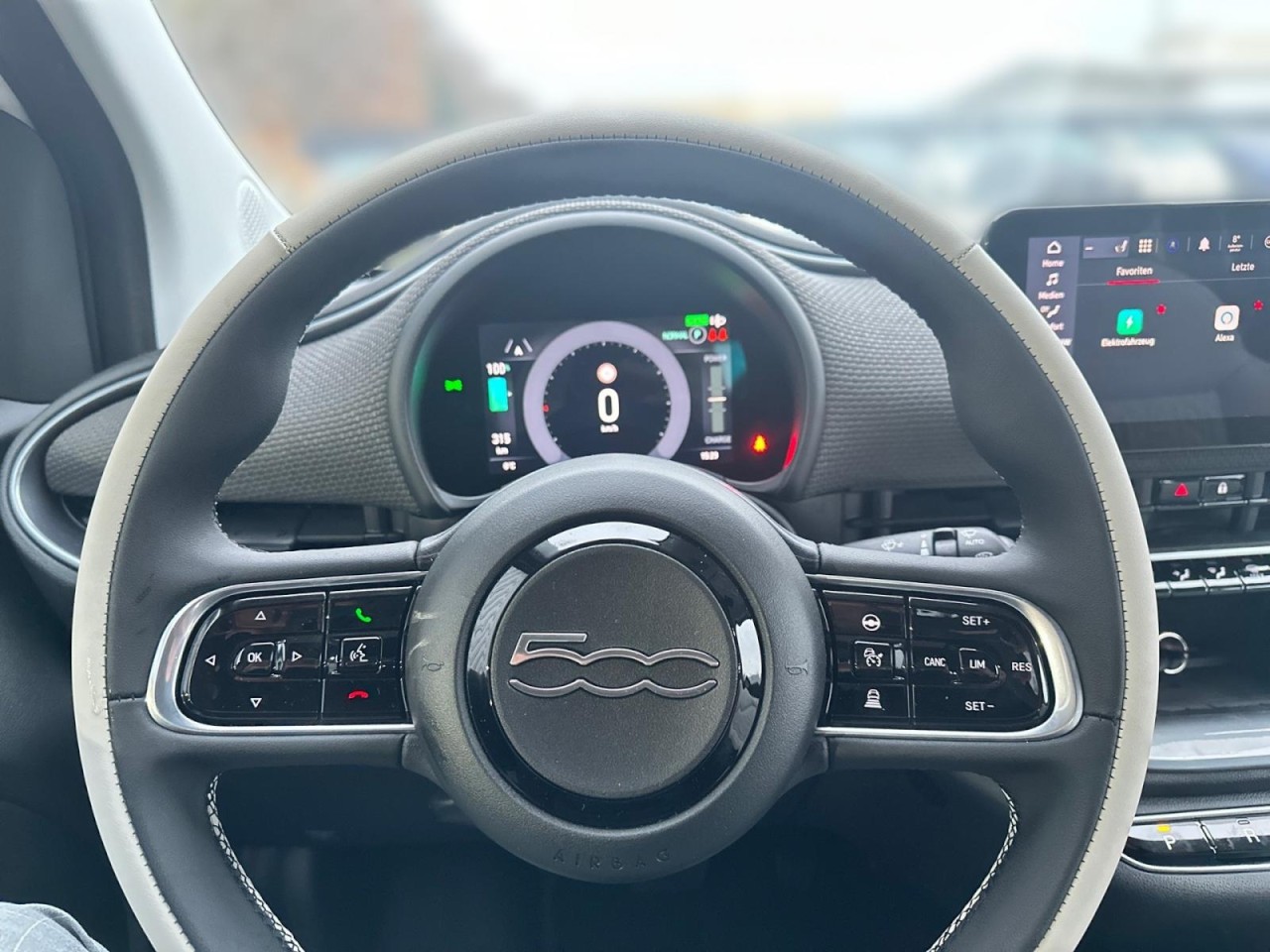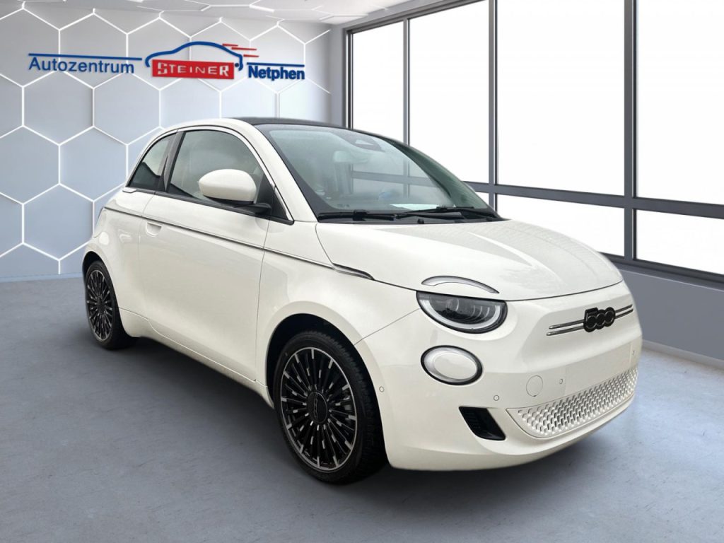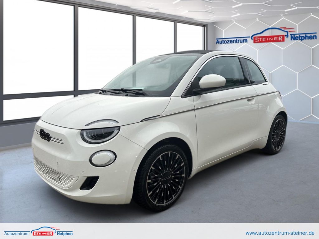 Fiat 500 Cabrio LA PRIMA by Bocelli MJ23 ELEKTRISCH 87 KW/118PS -grosse Batterie!*WINTER PAKET *Auflagefläche der Frontscheibenwischer beheizbarBeheizbare Vordersitze*Teilautomatisiertes Fahren ACC Abstandstempomat*EXTERIEUR17 Zoll-Leichtmetallfelgen mit DiamantfinishVoll-LED-Scheinwerfer Infinity + LED TagfahrlichtVerchromte Seitenzierleisten, Seitenfenstereinfassungen & EinstiegsleistenFiat Monogramm Verdeck (nur Cabrio)INTERIEURArmaturenbretteinlage in Dunkelgrau Soft-Touch MultifunktionslenkradSitze Fiat Monogramm aus Kunstleder Höhenverstellbarer FahrersitzMittelarmlehne vorne & Stauraum in der MittelkonsoleZweifarbiges Lenkrad aus KunstlederFußmatten vorne und hintenTECHNOLOGIE10,25 Infotainmentsystem inkl. Navi 7 Zoll TFT InstrumentenanzeigeApple CarPlay / Android AutoKlimaautomatikVerkehrszeicheninformation Keyless Entry & Go (inkl. Schlüssel in Steinoptik)Kabelloses Smartphone-LadepadTempomatAufmerksamkeitsassistent,Spurhalteassistent, AEBLicht- und RegensensorJBL Premium Audio mastered by BocelliHandschuhfach mit UVC-LampeHD-Rückfahrkamera mit dynamischen GitterlinienElektrische Fensterheber vorne mit Komfort-Funktion360-Drone View-ParksensorenParksensoren hintenLADENOne-Pedal-Driving ModusEV/PHEV Elektrische TemperaturregelungEV/PHEV Mode-3-LadekabelEV/PHEV-Schnellladefunktion 85 kWHöchste Nennleistung (kW) Elektromotor 87 Höchste 30-Minuten-Leistung (kW) Elektromotor 43 Elektrische Reichweite nach WLTP (km) kombiniert 312Elektrische Reichweite nach WLTP (km) innerorts 444Getriebe